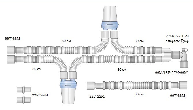 Трубка гофрированная 22, 4 шт, 0,8 м растяжимая