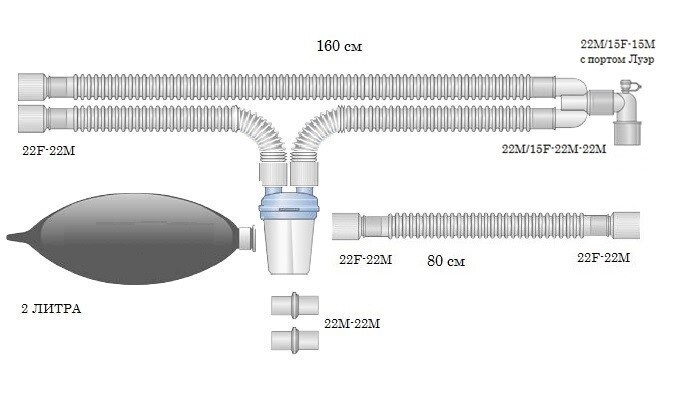 Мешок для дыхательного контура, одноразового использования 1 шт, 2 литра