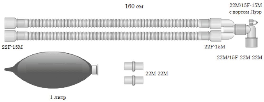 Мешок для дыхательного контура, одноразового использования 1 шт, 1 литр