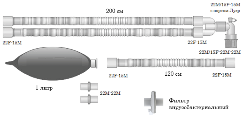 Мешок для дыхательного контура, одноразового использования 1 шт, 1 литр